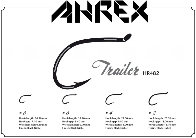 The HR trailer hook has an aggressive design for optimal hook ups. Black Nickel Finish. Available in size 2-8. Chemically sharpened with small barb.