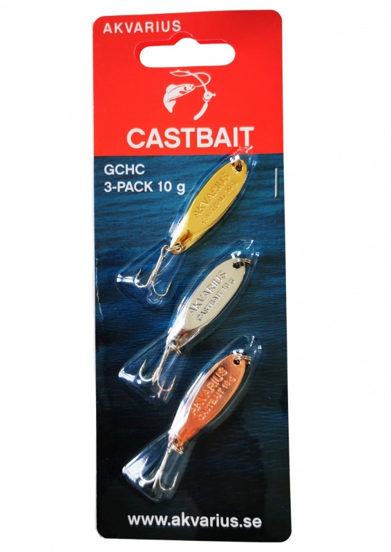Thanks to the aerodynamic shape of Castbait, you cast very long and can thus fish in larger areas. It is a great search bait to see where the fish are. An excellent choice for windy days when you want to reach further out to the fish. Castbait is a very versatile spoon feature thanks to its compact shape. It can be used for coastal fishing, trolling and vertical fishing from a boat or on the ice.The action is reminiscent of an injured fish and is a very simple lure that you cast out and crank home. These spoon lures have thousands of fish on their conscience and are simply a perfect bait for many fish species.They are environmentally friendly made of zinc which is electroplated to gold, chrome and copper. Also available in hand-painted colors.Sold as a 3-pack in either 10 or 20g.