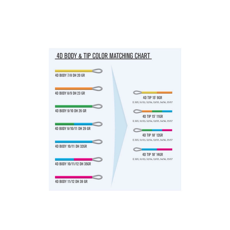 4D Distance bodies are made for those who fish longer rods or prefer longer heads. The 4D Distance bodies have extended lengths and are also available in heavier weights than our standard 4D Bodies. This means they are perfectly suited for use with our GL rods from 13′ and all the way up to our iconic LPXe 17’. Generally 4D Distance is 1,5 meters longer than the standard 4D bodies. Total head lengths with 4D Tip varies from 12m/39ft to 14,5m/47,5ft depending of sinkrate/wt and choice of tip length. In comparison the standard 4D bodies have lengths from 11m/36ft to 12,5m/41ft. As a general guideline we reccomend 15′ tips for rod lengths up to 14ft, for longer rods both 15′ and 18′ are suitable depending on your favoured length/weight.The 4D Distance bodies are built on our Direct Contact low stretch cores with only 6% stretch, all bodies have super strong 42lbs cores that will make you fish with confidence targeting Big Steelhead or giant Salmon alike. All lines are fitted with color-coded sleeves in the front towards the connection with the Tips. They also have ID printing in the back ends for easy identification. They are fitted with small, coated loops with the industries strongest and most reliable, reinforced sleeves. Produced from environmentally friendly materials and featuring strong Polyurethane coatings.4D Bodies and Tips are sold individually, so you can mix and match according to your preferences. The 4D system excels when used with our 4D Double Density Tips with tapers and performance optimized for the 4D Bodies. All in all, there are 7 different Tips from Dual Density Floating to Super Fast Sinking S5/S8 to choose from. All tips are color coded for an easy match with the 4D body. If you fancy a more skagit style approach, these bodies also work superb together with our 15’ T-Tips.
