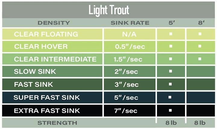| Model | 8' Float – PFO-8LT, 5' Extra S.F.Sink – PESF24-5LT, 5' Fast Sink – PFS8-5LT, 5' Float – PFO-5LT, 5' Hover – PH-5LT, 5' Intermediate – PI1-5LT, 5' Slow Sink – PSS4-5LT, 5' Super F. Sink – SF16-5LT |