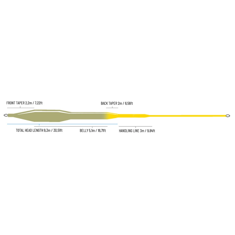 Power Presentation is developed for those challenging days when you target tricky fish in small to medium sized waters and need to present your flies spot-on with a 15’+ long leader, a short length of fly line outside the rod tip and won’t get a second chance. A unique taper and weight distribution, concentrated towards the first 5 meters of the 9,3 m long head, increases the velocity and power of the turnover towards the end of the cast. This helps to turn over long leaders and also to combat strong head winds. The distinct turnover in the front also makes the line well suited to cast streamers, heavy nymphs, bulky dries, nymph rigs and “klink & dink” setups. The line is easy to cast, well balanced and performs well with most casts, but sacrifices Spey properties a bit due to the weight being distributed further towards the front. Will also work perfect when Bomber fishing for Salmon or casting big dries along the coast.TAPER – DESIGNPower Presentation has a medium long head of 9,3 m/30,5’ it has a quite short 2,2 m long front taper and a rather short 2,0 m/6’7” back taper, leaving a belly length of 5,1m. The belly is divided in two sections, where the front 2 meters have a slightly larger diameter creating its special turnover properties. The handling line is a 3 meter, slightly thicker part of the running line which makes your loops a bit more rigid and also adds flexibility to how much line you can manage in the air when your whole head length is outside the rod tip. The Pale orange colour of the Handling/Running lines extends half way up onto the back taper and indicates the correct line length to keep outside the rod tip for the ultimate rod load when casting. It is looped in both ends and has an ID marking on the front-end loop sleeve.Colour: Amber Olive with Pale Orange handling- and running line. Total length is 27,5 meters/90 feet in all sizes.TECHNOLOGYTLT (Triple Layer Technology) & Direct Contact CoreComplex, multiple density and hardness in the coatings of these lines help to shape the flylines of the future. A new, revolutionary chemical formula and three different coating materials control hardness as well as memory and density in various parts of the lines. This creates better casting performance, more efficient fishing and bite detection, as well as added durability. TLT has given us the chance to build lines that float well and repel water better and more effectively than any lines we’ve produced before. Built on braided multifilament Direct Contact Core with only 6% stretch.ECO ADVANTAGESOur eco vision is Clean All the Way, which means the least environmental impact possible. This fly line has a Polyurethane coating instead of PVC that bleeds harmful plasticizers (Phthalates) into the water. Our boxes are made from recycled paper with water-based UV coatings and we have removed all plastic spools from the packaging. The result is that we can offer you the “cleanest” and most eco-friendly fly line on the market.