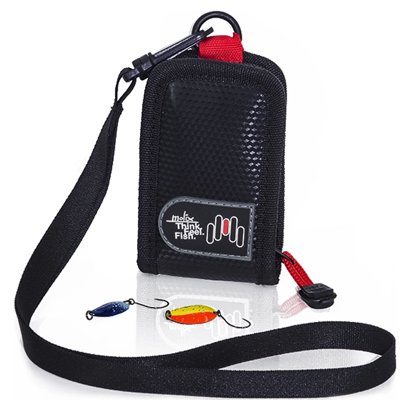 The Wallet Lure Case is a small lure tackle box, specific for Street fishing, trout area and rock fishing where light and essential equipment is a necessity. It is made of resistant and first choice materials, the carbon look style is unique and the practical shoulder strap is provided with a carabiner so that it can be worn comfortably around the neck. Thanks to its small size it can also be transported in your pocket. Inside the case, the baits are housedin the EVA slots and the small accessories are housed inside the transparent PVC pocket.