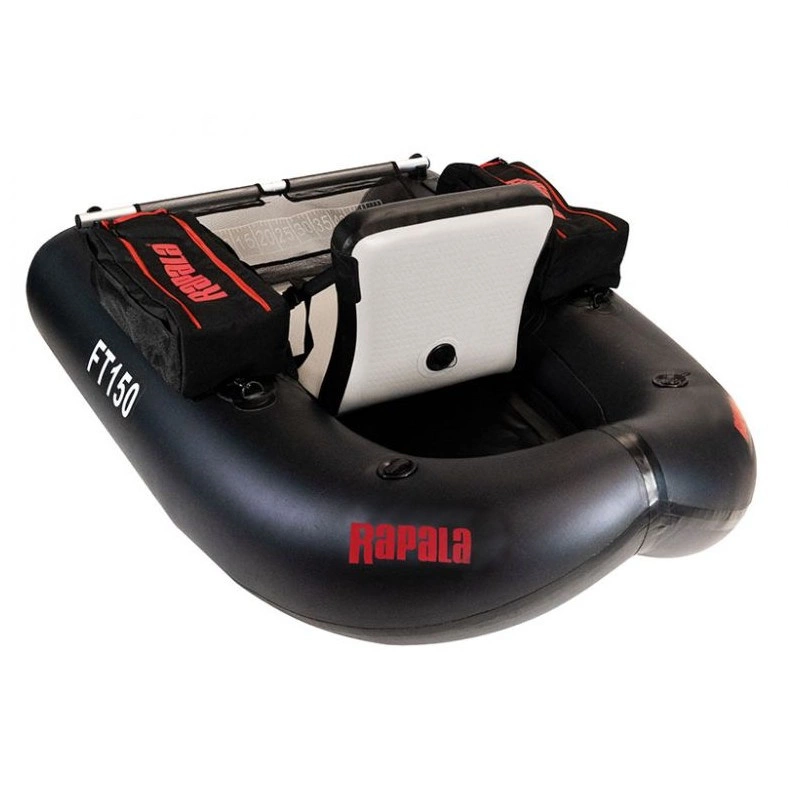 With fins, it is easy to manoeuvre and you can get where you want to go quickly and easily. The FT150 is functional and stable to fish from and designed and manufactured to take waves and sea in the best possible way. Thanks to the U-shape with two forward-running pontoons and the elevation in the back, it breaks waves effectively and safely.The pontoons are tubelessInflatable seat cushion and backRemovable bagsFoot pumpCarry bagRepair kitRemovable carrying strapsLength 150cmWidth 120cmWeight 7,5kgBag size 45x20x12cmMeasuring board with centimeters