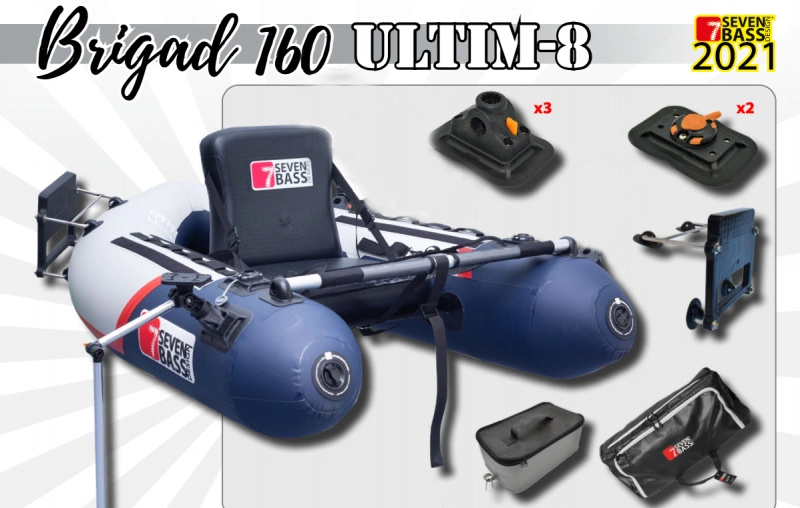 These models weigh in at a modest 7 kg and are made to move quickly between different lakes. Use the side grips or shoulder straps to facilitate transport when hiking in distant waters.These models offer perfect storage of your equipment in the rear seat space or via removable side bags. The Ultim-8 concept of Seven Bass Design comes directly from the user experience and the feedback they have been able to collect all around the globe, whether through all their staff as well as the end users of their products, from the USA to Italy, from Canada to Portugal, from Sweden to Japan, via Germany or the countries of the East, without of course forgetting France. It is really the culmination of a user process in all its depth.The observation is the same everywhere when we talk about fishing for predators in a float tube:“YES, THE FLOAT TUBE IS VERY IMPORTANT, BUT THE ACCESSORIZATION IS JUST AS IMPORTANT!The ULTIM-8 Concept is therefore mainly focused on this: User experience.All products in the ULTIM-8 range are therefore equipped as follows in order to be accessorized in the simplest way possible by anglers:All models have 5 Plug & Go bases:• 2 Plug & Go Low Profile base placed directly in front of you, on the side of the apron.They have arranged the LOW PROFILE bases, because if you do not use them, the height of these bases will never hamper you• 3 classic Plug & Go base with double entry :2 on each side on the front, and one on the back.Similarly, all models have a motor mount, located either on the right rear, or completely at the rear depending on the model.All models have the CLIP LINE system, and are delivered directly with:• a FLEX CARGO XL bag, PVC bag with the largest storage capacity of the entire CARGO FLEX SYSTEM range: 52cm long, 28cm wide and 20cm high generates almost 30 liters!• a BAKKAN SYSTEM L, the largest clip line compatible bakkan, with its 13.2 liters of storageLength 160 cmWidth 120 cmNb. of air chambers 2Weight 7 kgMax. load 160 kgCompositions PVCPolyester deniers 1000 DProperties siège mousseThickness 0.7mmValves: High PressurePVC CoatedMax. Pressure 3.6 Psi / 0.25 BarNb. of people 1