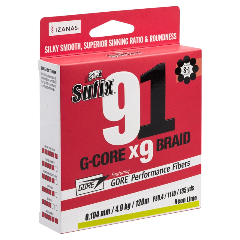 On casts, the round profile means that minimal line is in contact with the guides as it flies out. As a result, there is very little friction and casts reach further.The brand new, extremely smooth and slippery coating used on the line gives the silky smooth surface minimal friction, longer casts and it also lasts longer.GORE, which manufactures GORE-TEX, and Sufix, have together created a long-throw braided line constructed from eight UNHMPE fibers + one GORE® fiber (=9).