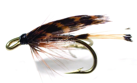 Heggeli Silver. Classic trout flies tied on a brown, down eyed double Mustad hook.