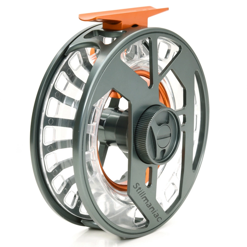 STILLMANIACS in mind we designed this modern cassette reel to suit today’s stillwater fishing. The reel balances perfectly our Stillmaniac rods but in addition to these it is a great choice for your pike or single handed salmon rod, or for whatever fishing where you need several different types of lines. The cassette has a quick change system so you only need to unscrew the locking ring for half a turn, and you can pull it out. It also has a solid area where you can write with a marker pen the line which you have on it. The reel comes in a handy neoprene case with 3 cassettes and if you need more, they are available in moderately priced 2-packs.Large arbourV- or heraldic V- frame designSmooth disc brakeBuilt in counter balanceSKF bearing grease